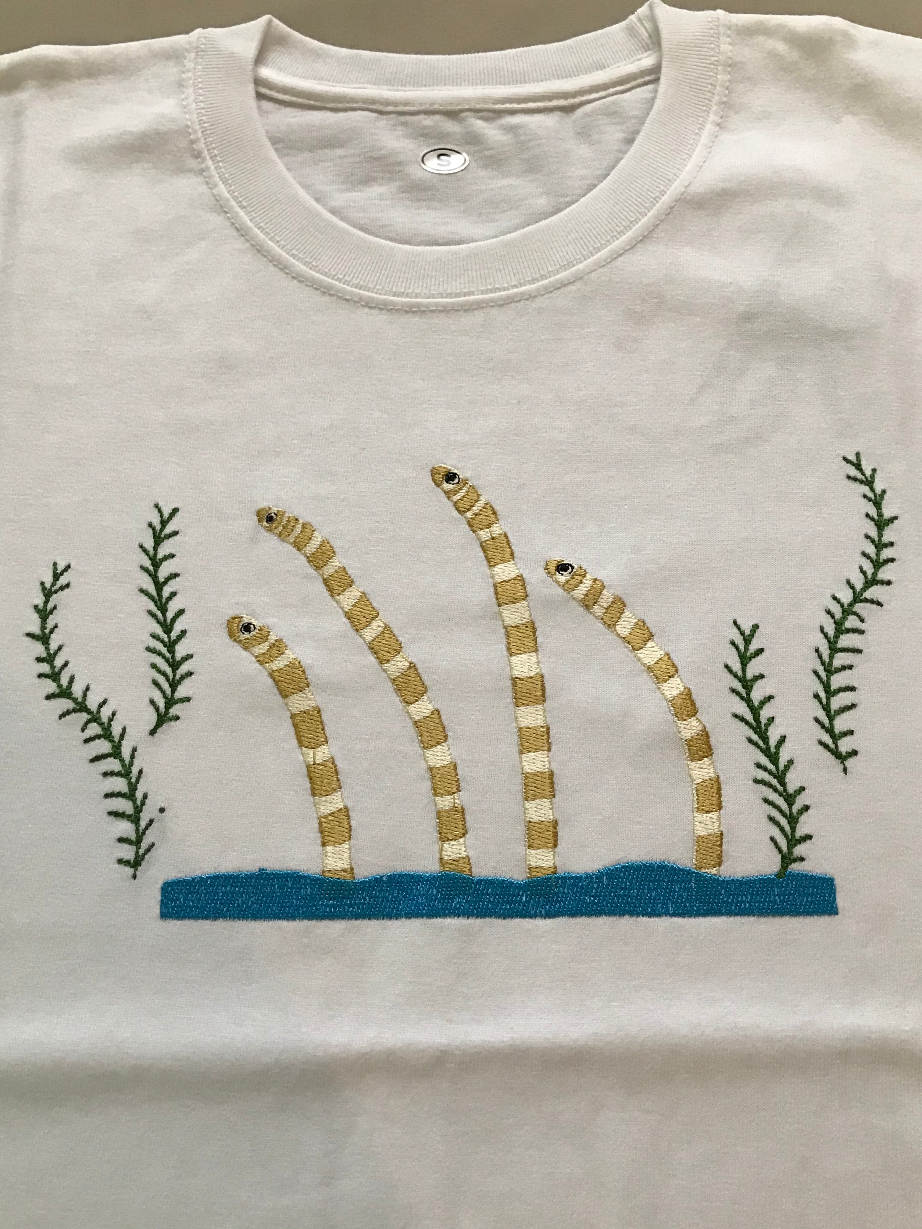 チンアナゴ(ニシキアナゴ)と くらげの刺繍 Tシャツ