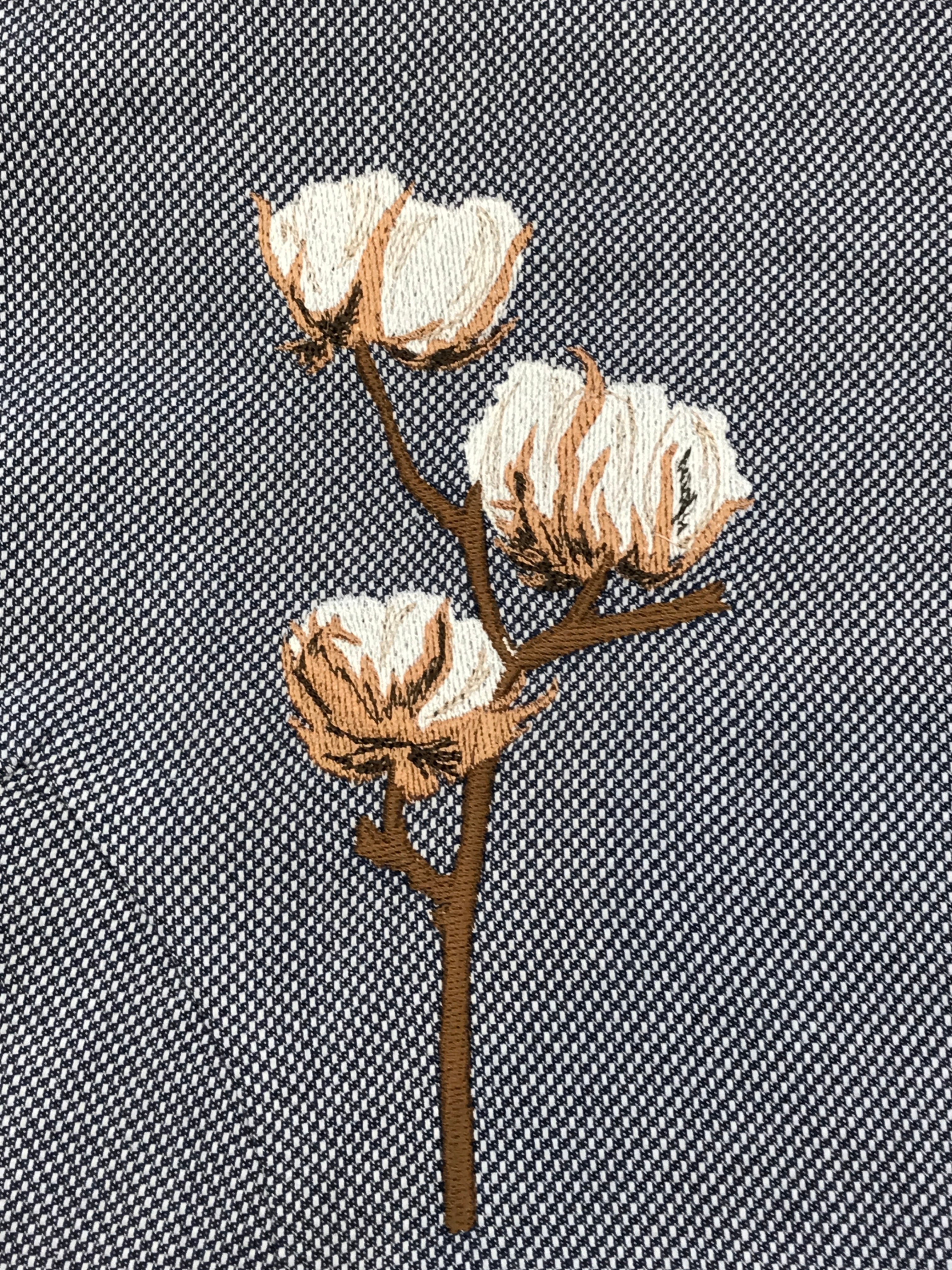 オーガニックのイメージで【綿花】を刺繍しました。