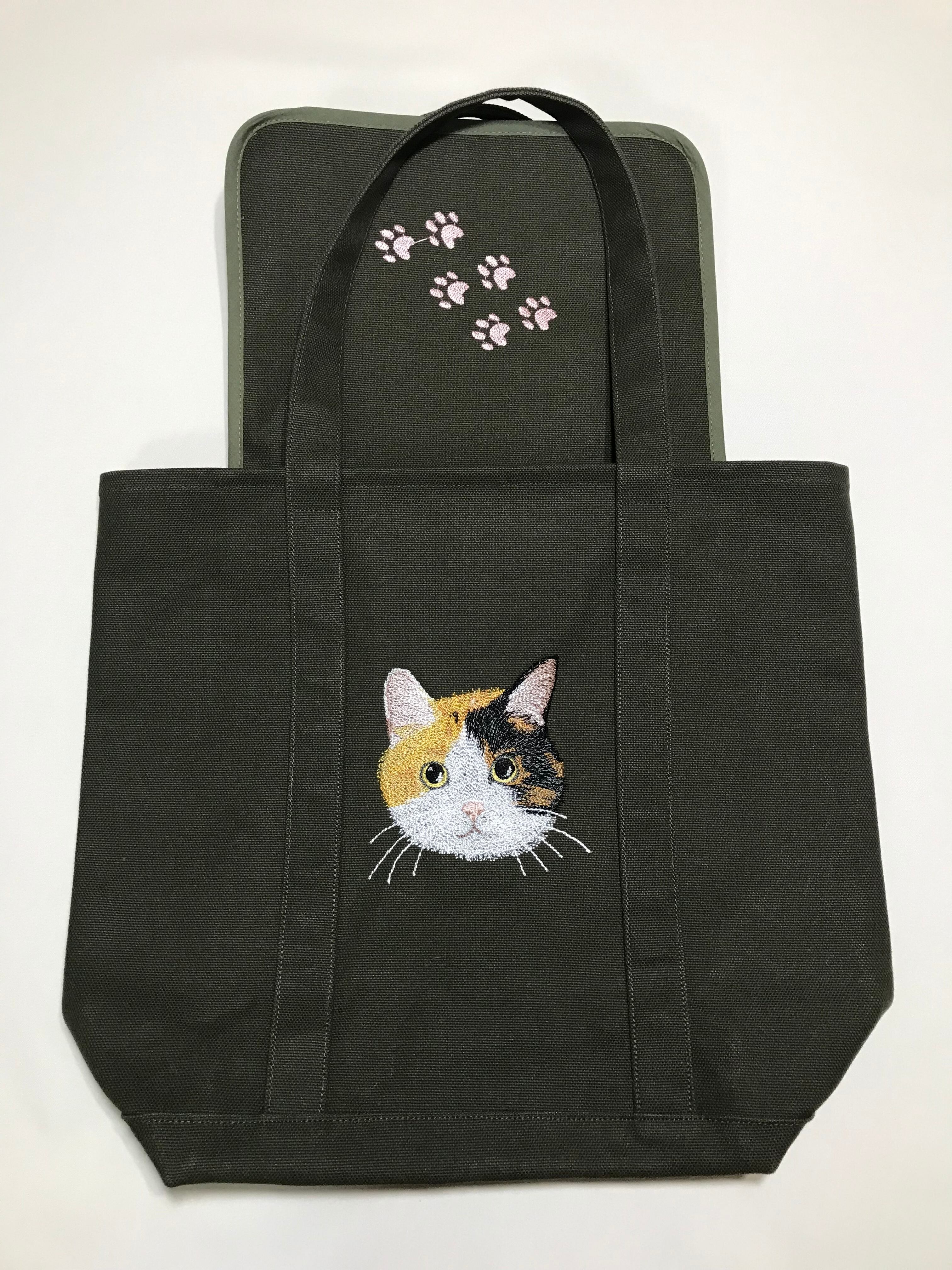 荷物を入れた時に中身が見えないようにする為の蓋布です。そちらにも足跡刺繍があります。