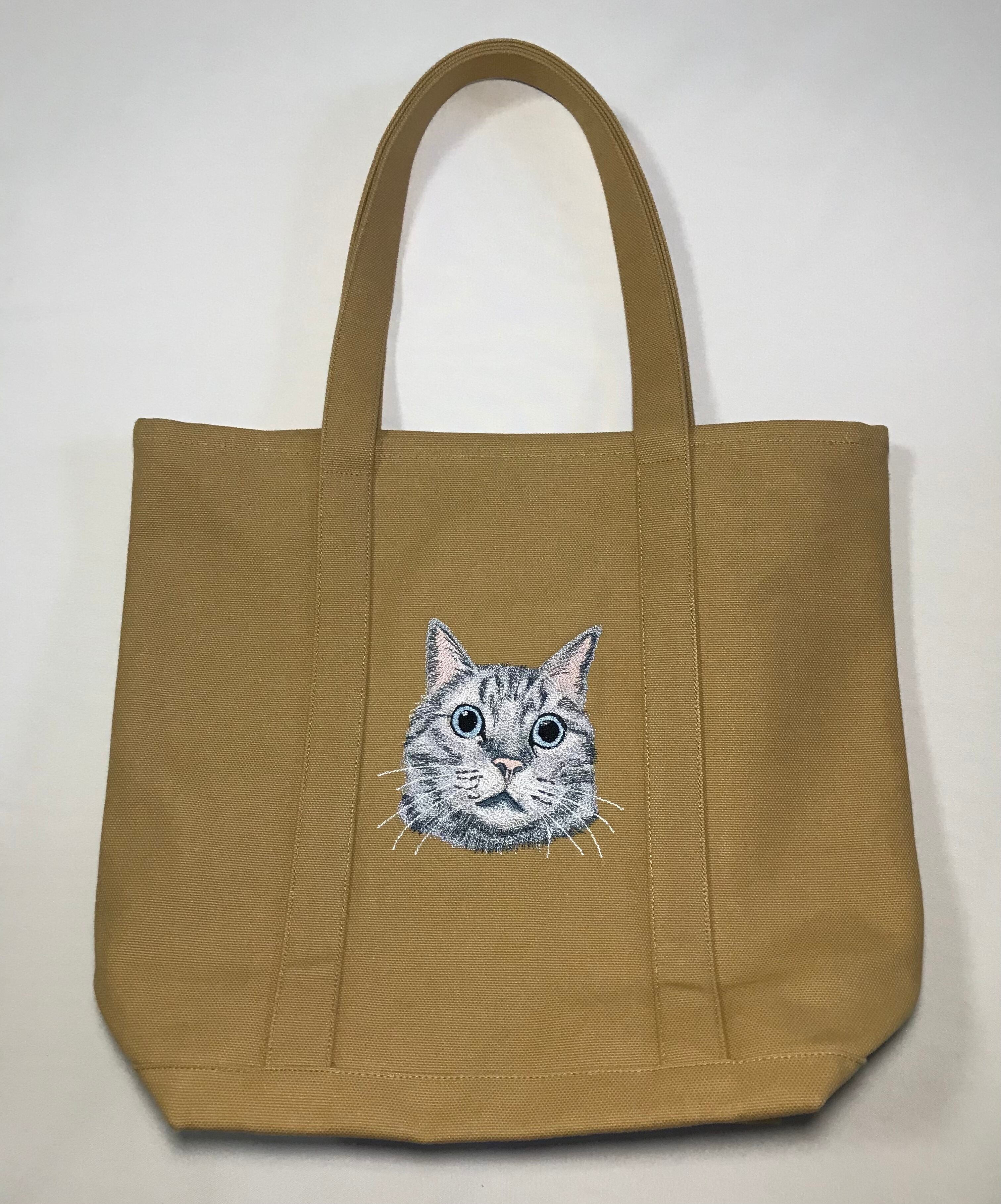 帆布トートバッグ 猫サバトラ模様 刺繍